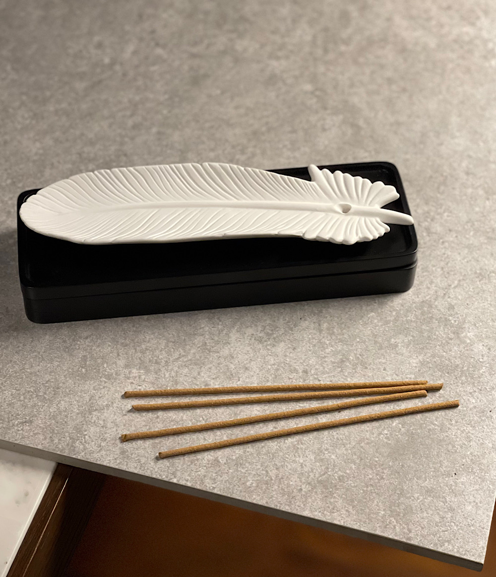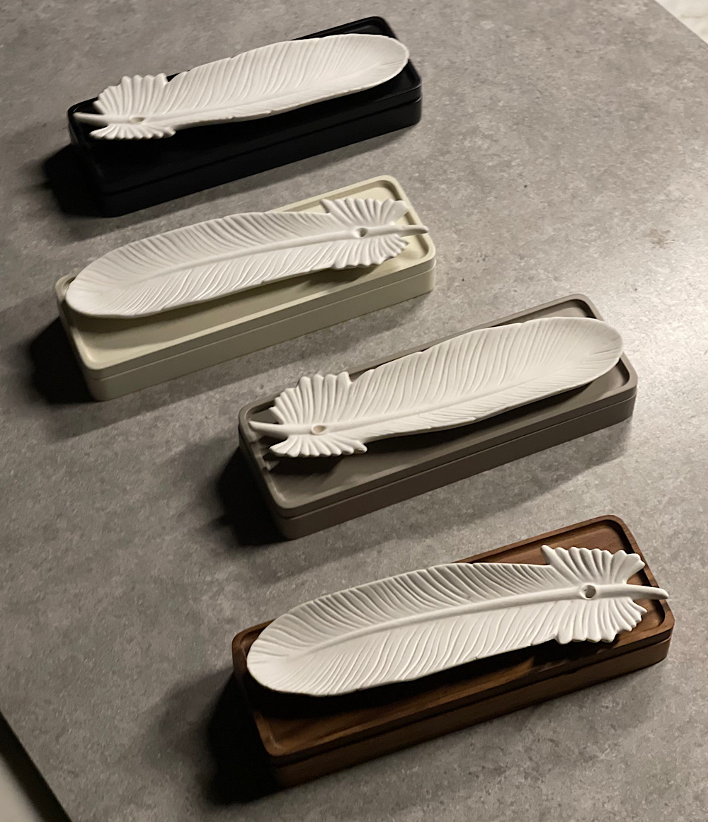 CERAMIC FEATHER STICKS HOLDER BOX .