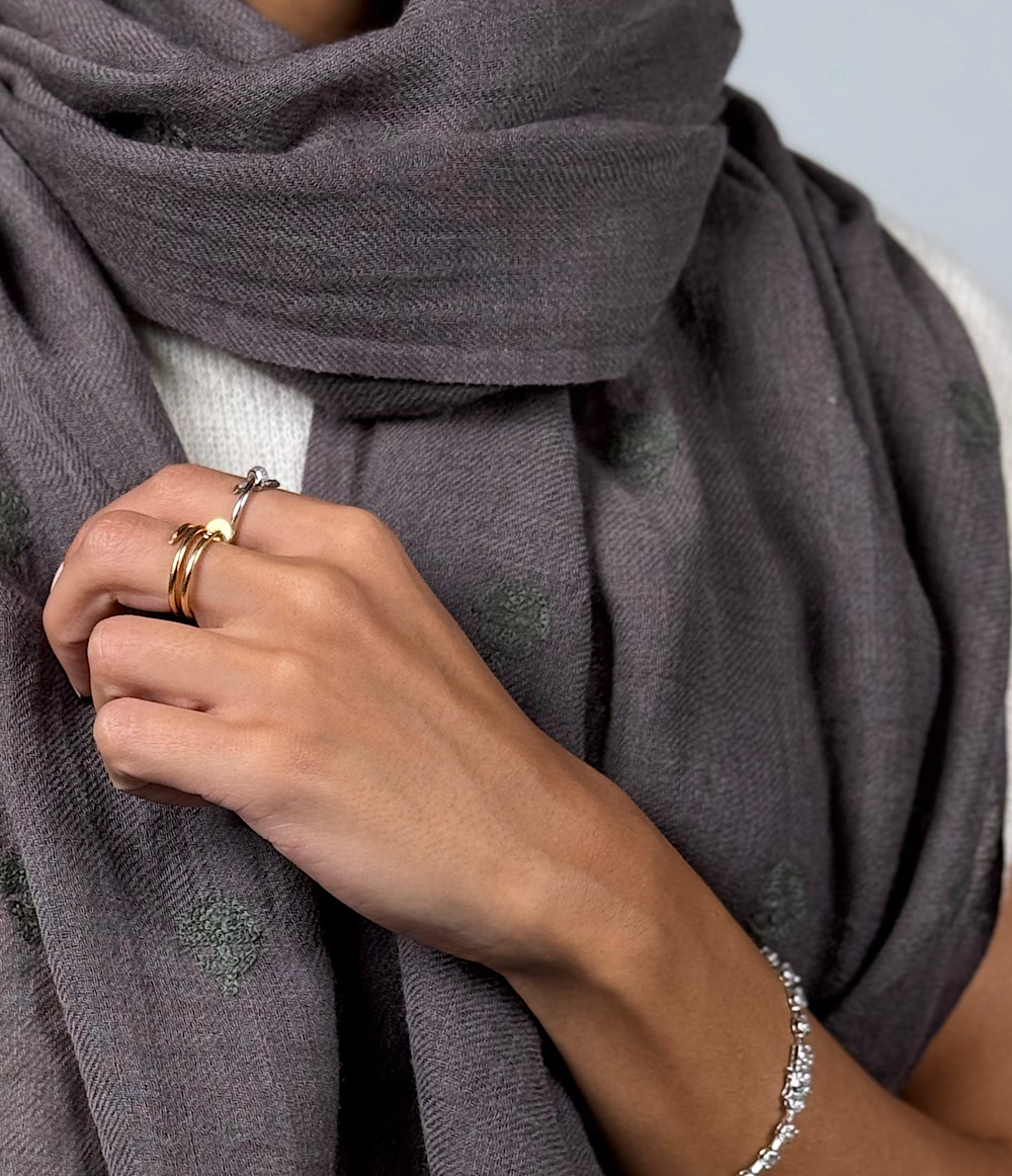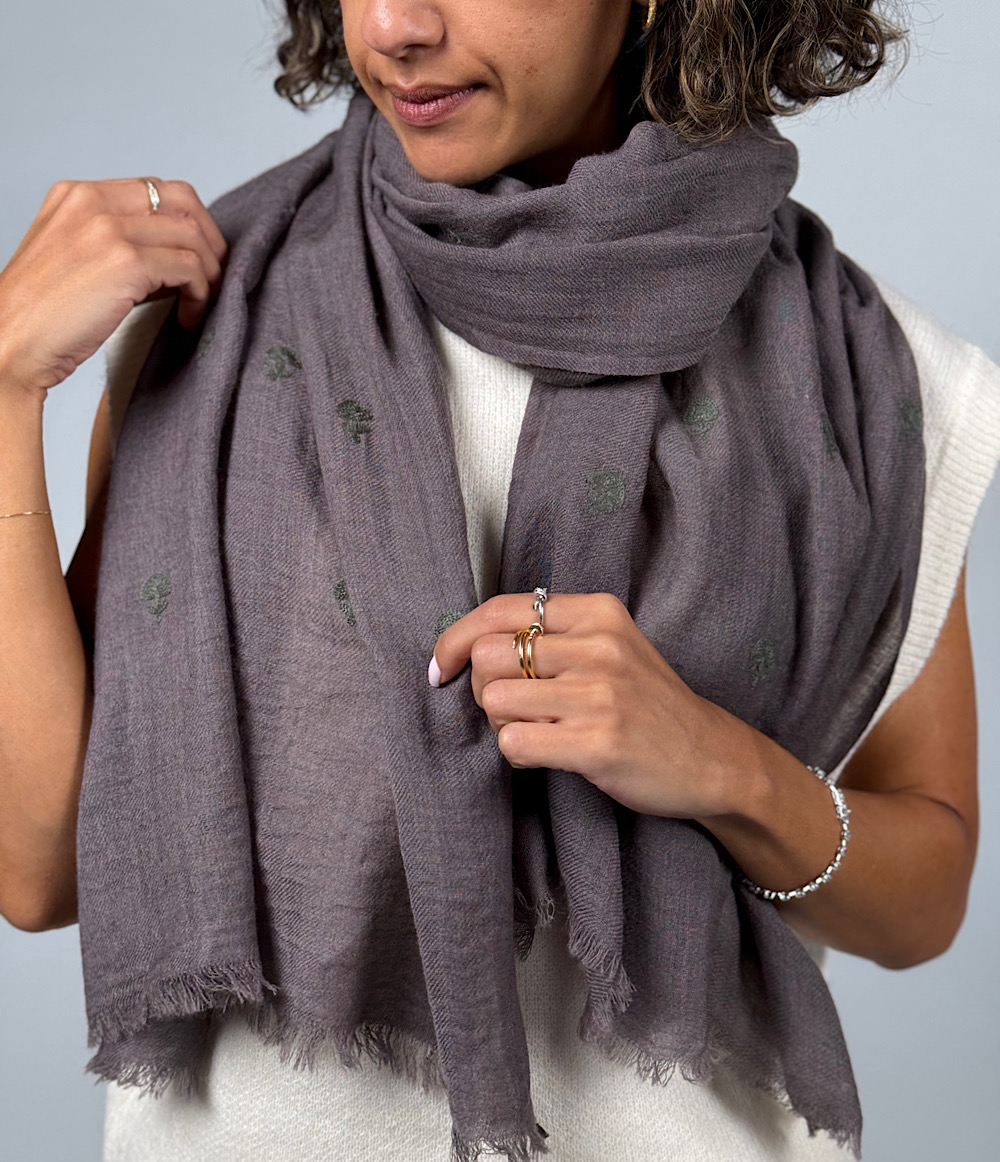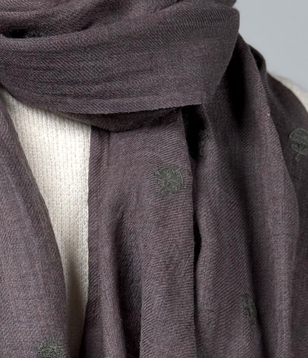WOOL EMBROIDERED SCARF - DARK GRAY